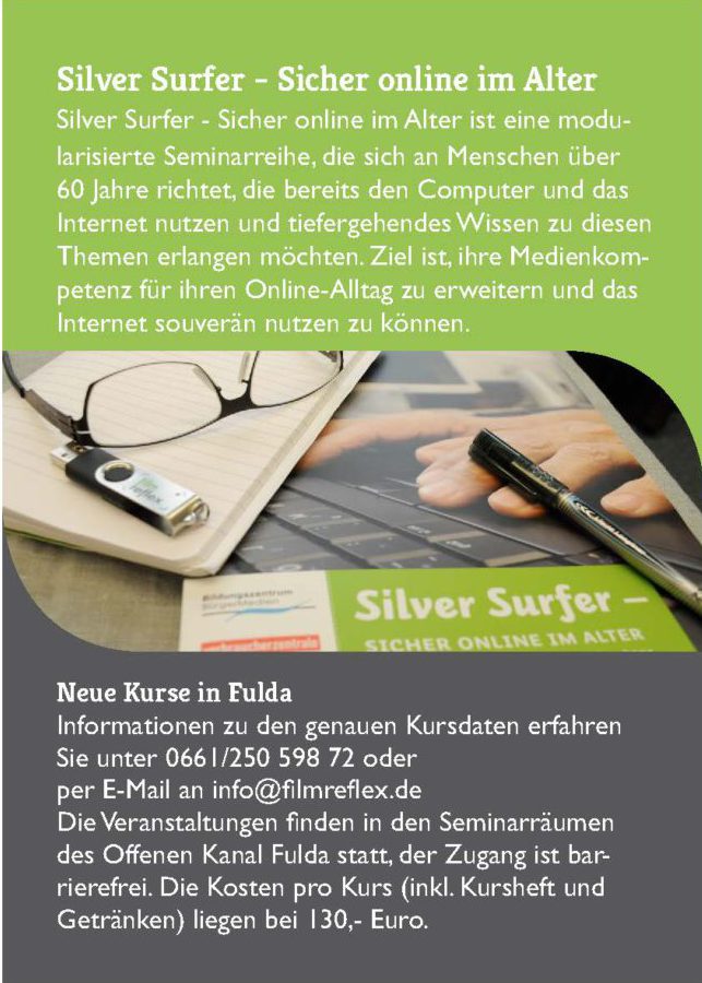 Mehr als 60 Prozent der 60- bis 69-jährigen Menschen nutzen das Internet. Um dieser Gruppe die Möglichkeit zu geben, sich auch in kritischen Situationen dort sicher zu bewegen, bieten wir für 2017 wieder Kurse für „Silver Surfer“ an.